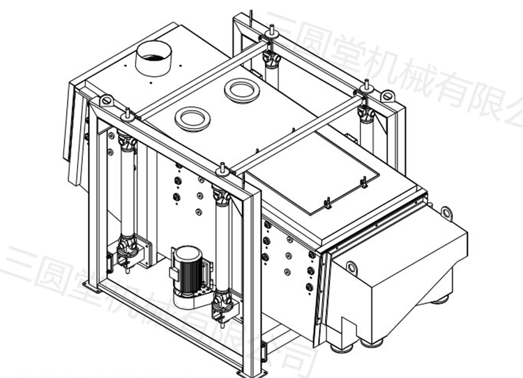 a、方形搖擺篩的上部采用快速拆卸手柄,將整個(gè)機(jī)器連接到一個(gè)整體上。 上蓋完全密封,可有效防止灰塵過(guò)篩時(shí)灰塵飛揚(yáng)。